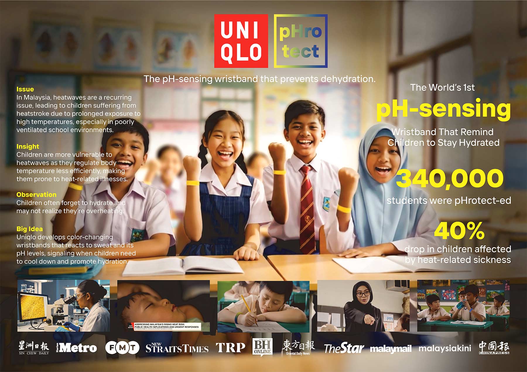 Uniqlo develops colour-changing wristbands that react to sweat and its pH levels, signaling when children need to cool down and promote hydration.