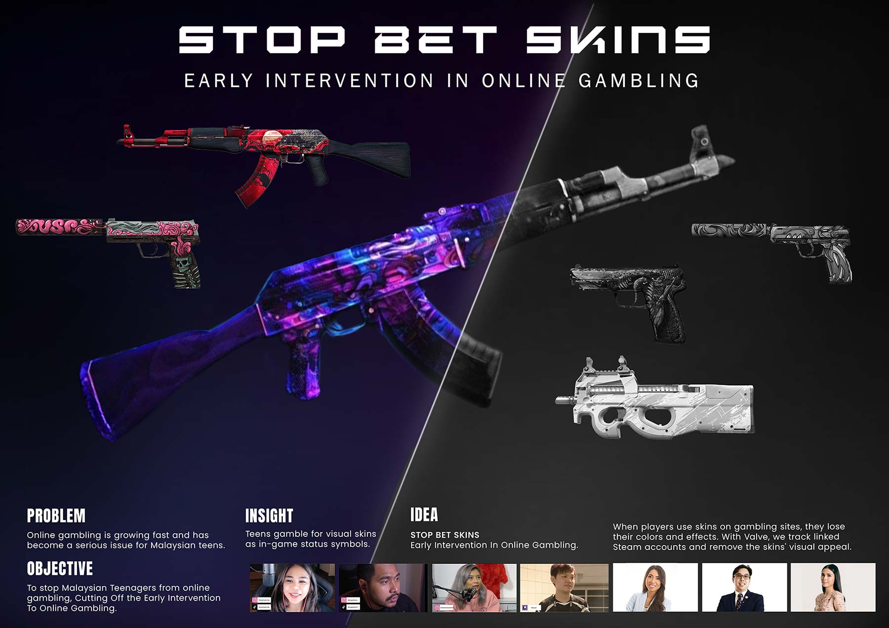Partnering with Valve, the creators of CS:GO and CS2, we use IP tracking to detect accounts linked to illegal third-party skin betting sites, and without warning we remove the visuals of ‘bet skins.’